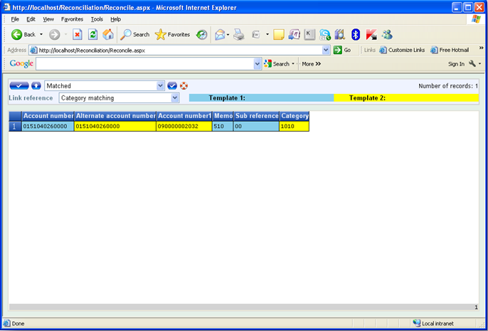 • Reconciliation results View Matched, Simi-matched, Unmatched records in both templates.