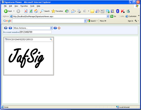 • Searching For signatures JaffSig has the ability to search for signatures by account number, customer name, and Meta information. Comments on signature can be searched.